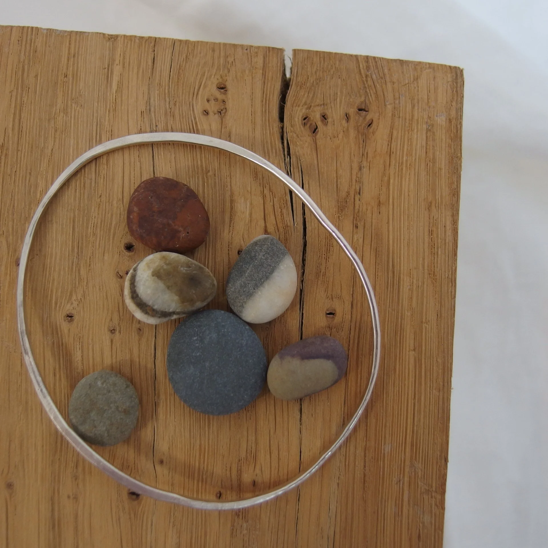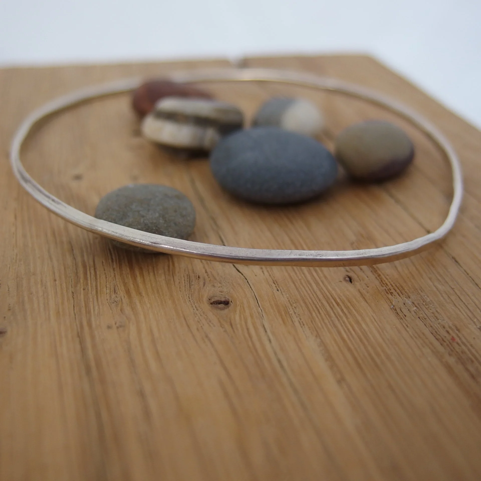 Single, recycled silver bangle. Made by artist and jeweller Rose Teleri, inspired by the north Pembrokeshire coastline.